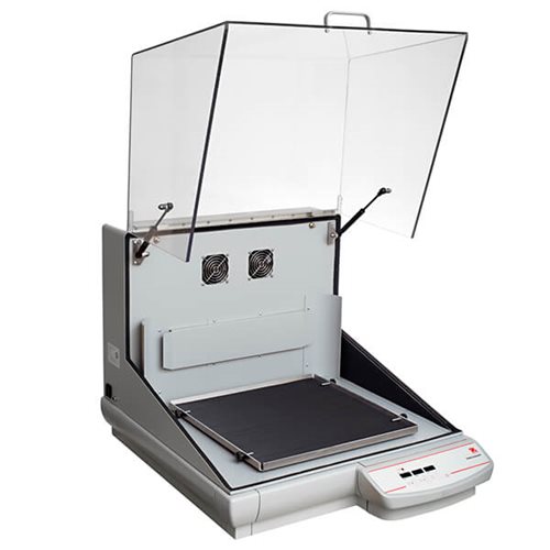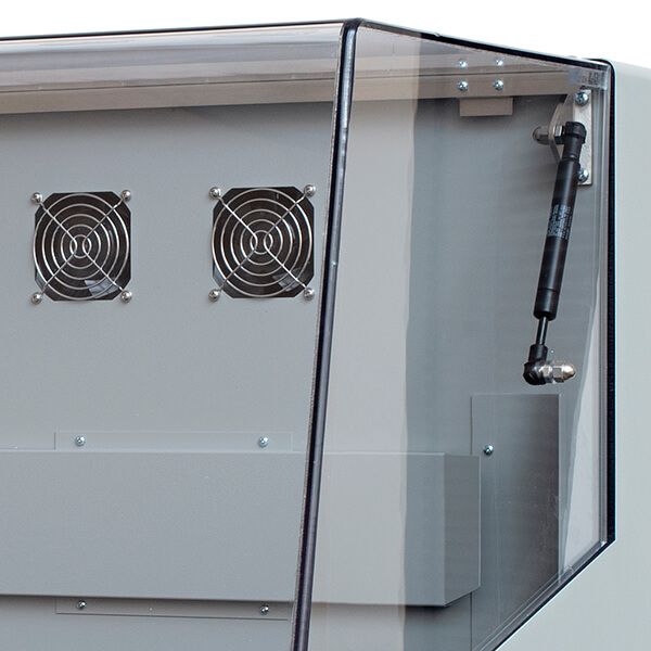 The exclusive Opti-Flow Forced Ventilation System utilizes twin induction or a single large fan. Air is deflected around & not directly on samples, creating a circular flow of air ensuring uniformity.
